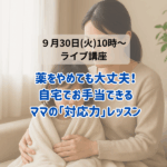 ブログでも少しずつ取り上げていきますし、9月30日のライブ講座ではさらに詳しく、実際のケア方法やお手当についてもご紹介しますね。