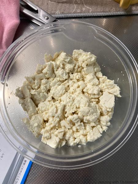 豆腐1丁(300g)で、手拭い1枚を3等分して、3つほど作れました。